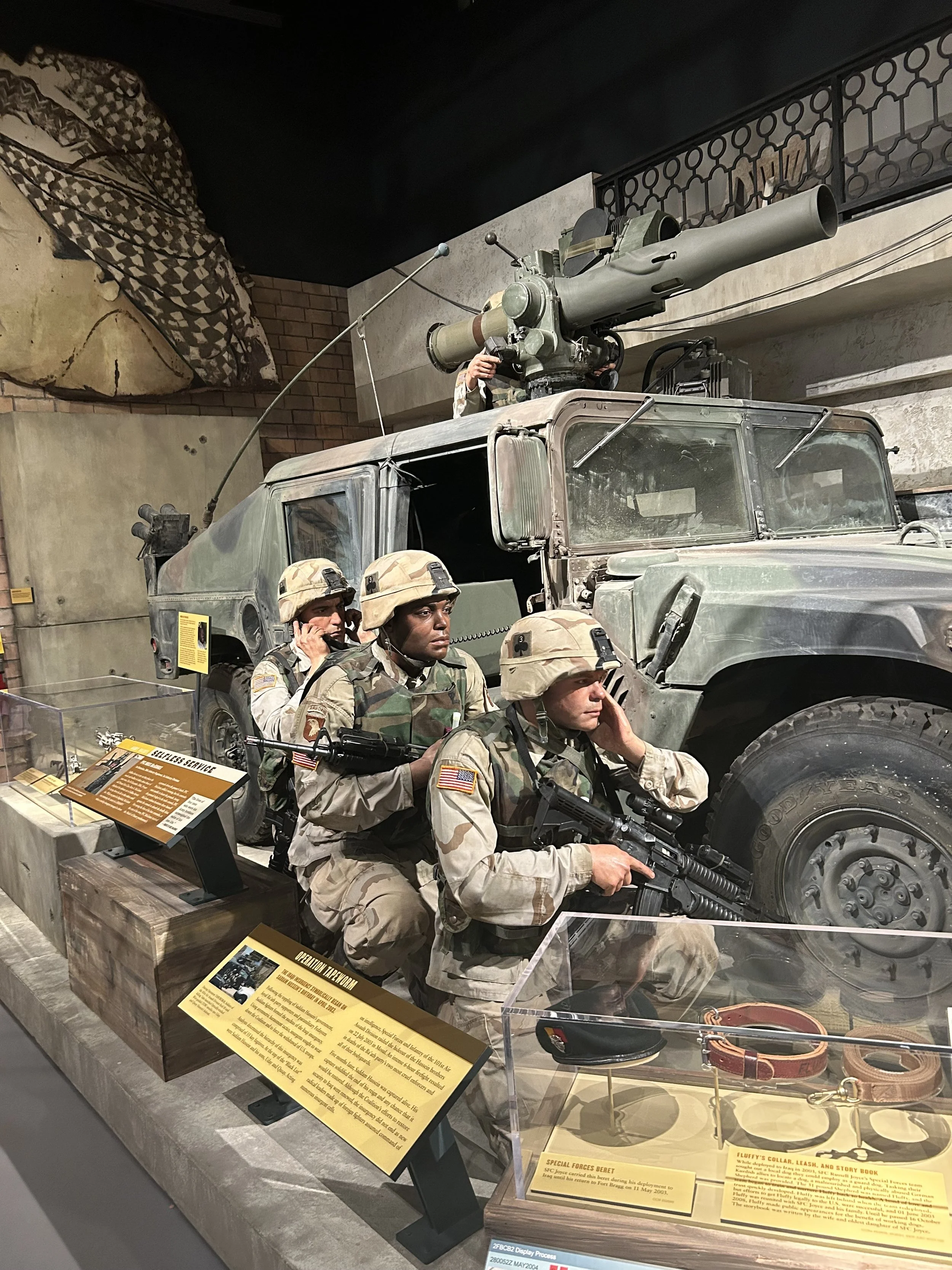 I looked at the Humvee before me with life-size soldiers frozen in place; the scene shares a moment in time with passers-by charged with danger, fear, and bravery in the National Infantry Museum's GWOT gallery. The plaque in front of the vehicle shared a quote from Ross McGinnis's parents, "The lives of four men who were his Army brothers outweighed the value of his own life." Their words were a fitting answer to my daughter's difficult question. After I read them to her, the silence that hung in the air between us seemed to communicate so much more than any additional words could have.